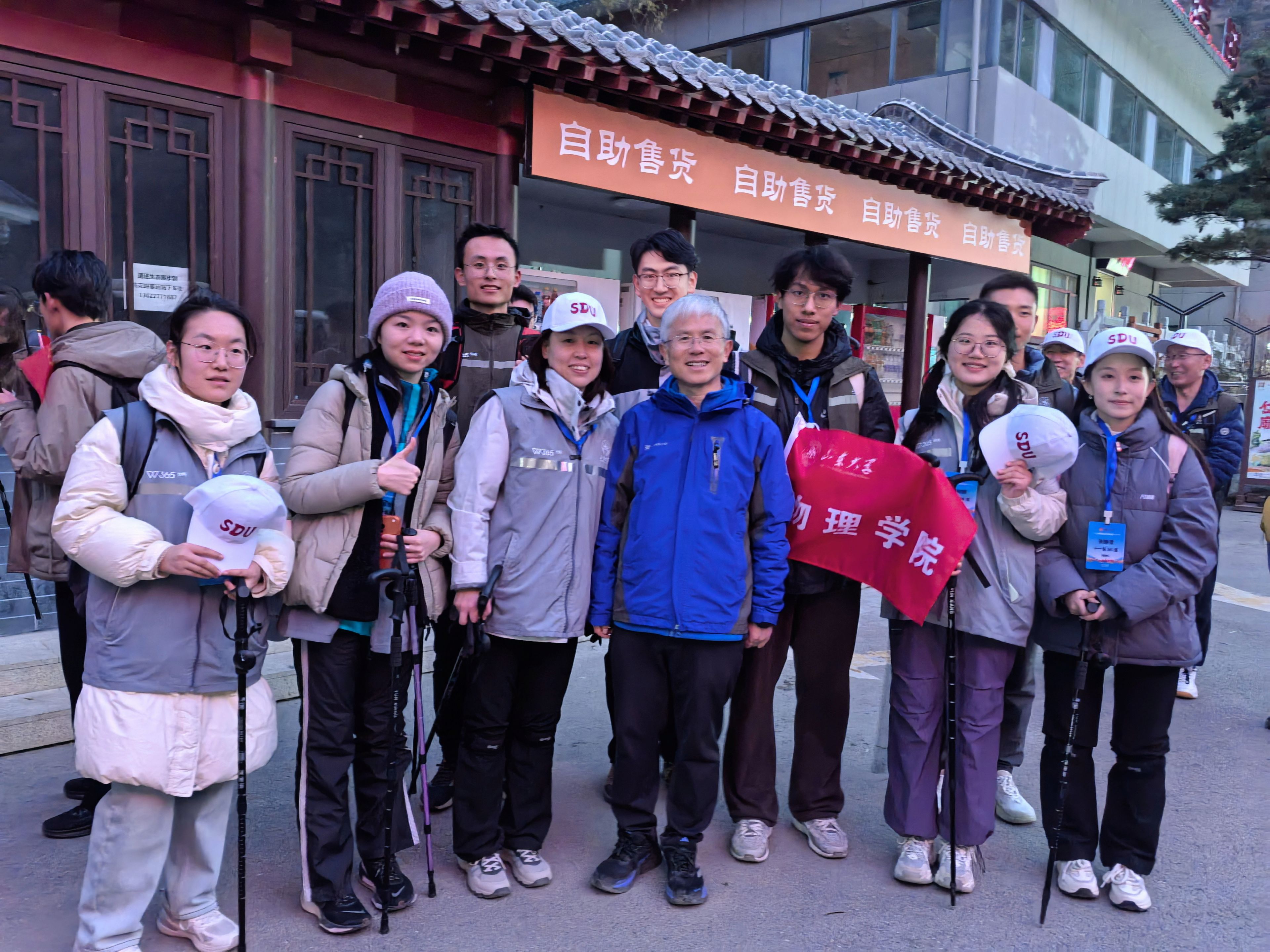 11月16日,山东大学第二届“励志健体,勇担使命”泰山徒步活动在泰安泰山举行。物理学院党委副书记辛莹带队,学院辅导员王浩文、张静雯与学院本硕博学生代表共16人参加活动。辅导员王浩文受邀担任活动出征仪式主持人。