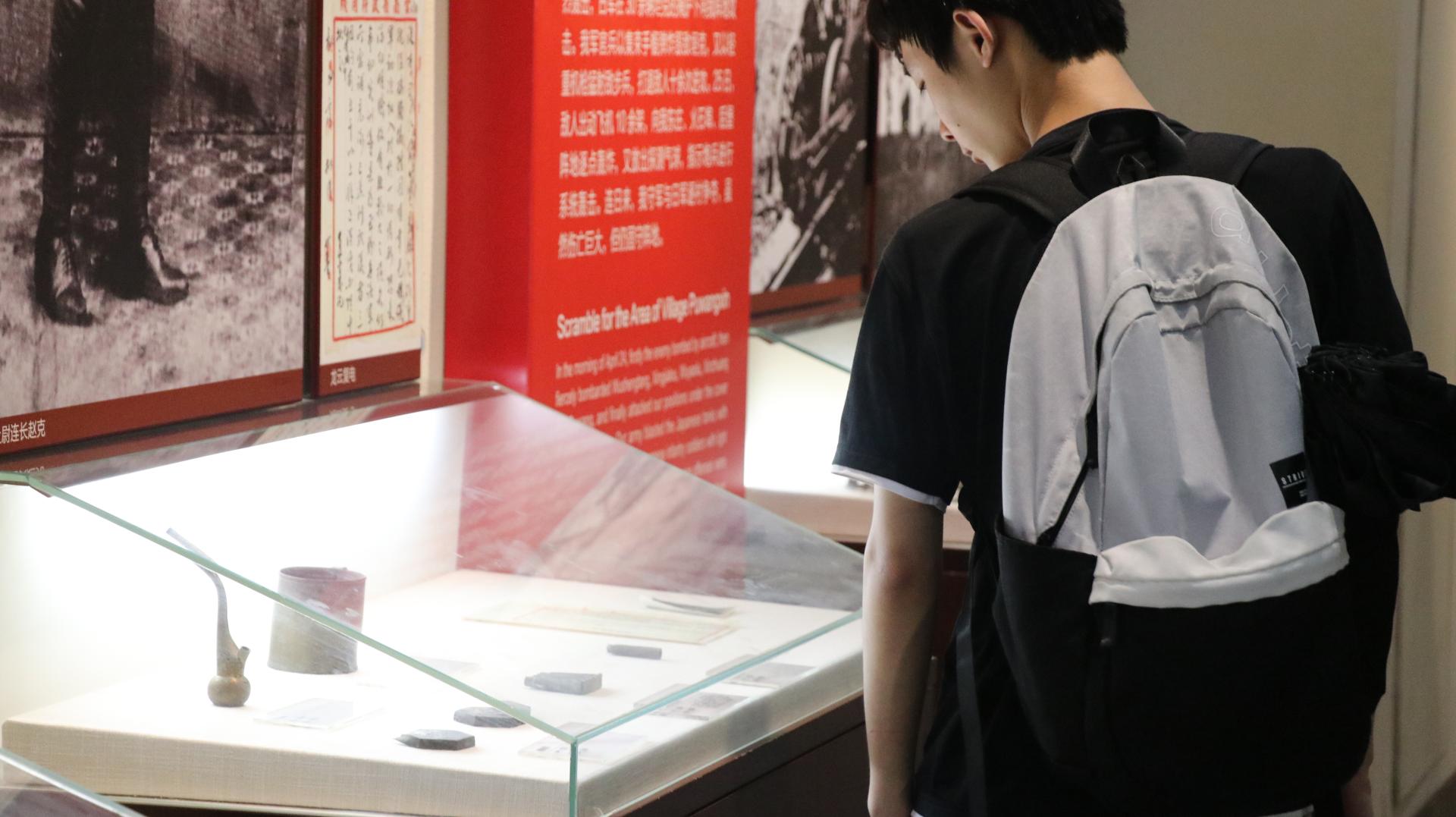 然后队员们进入馆内参观,对于其中的历史文物等展品和细节还原的展示表现出了浓厚的兴趣,纷纷驻足细细观看。
